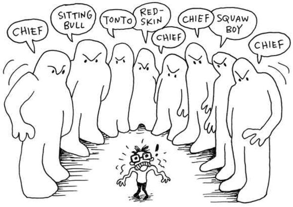 Image from page 63 of PTI, in which Arnold illustrates himself being verbally abused by his white peers at Reardan High.
